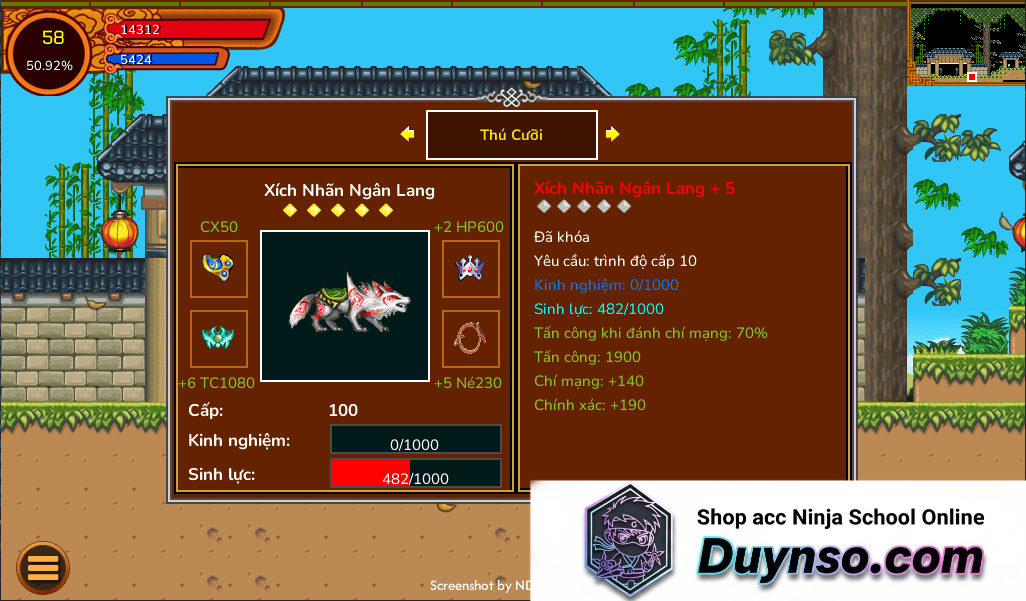 Sói lv100 2cm tc cx max 20 bánh...